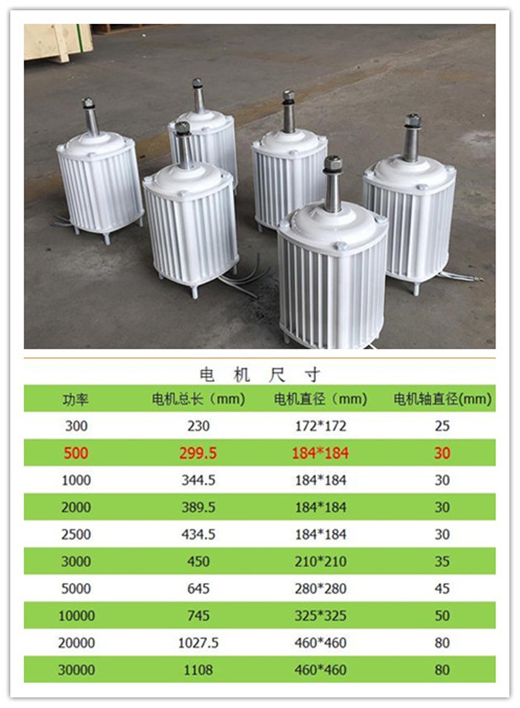 1、磁钢采用有磁铁王之称的钕铁硼,型号:N35SH,高等级纯铜丝绕组,发电效率高稳定;