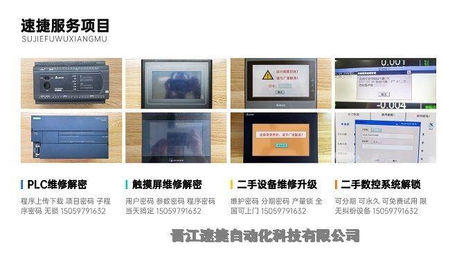 【MCGS昆仑通态触摸屏解密】 可以解最新版mcgspro进系统密码,用户密码,参数设置密码,到期密码 永久激活码昆仑通态触摸屏解密推荐晋江速捷自动化; a.昆仑通态mcgstpc触摸屏程序备份复制克隆,logo电话修改; b.昆仑通泰组态软件工程密码解密,MCGS组态工程文件解密 昆仑通态mcgs触摸屏解锁,解密 ,触摸屏维修,触摸屏忘记操作密码,权限密码,锁机密码等问题都可联系我们 可安排工程师上门服务,先处理,后收费 公司地址:福建省晋江市安海镇龙山东路16号 联系人:董工