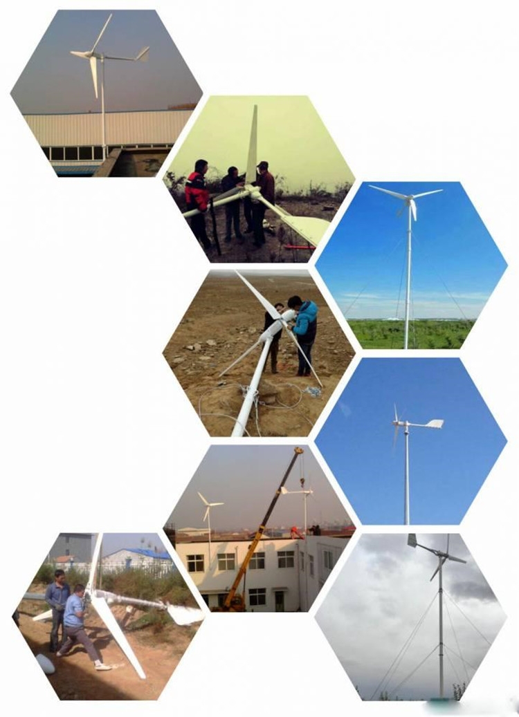 5.独特的简单控制方式,自动迎风,有效提高了风力发电机的工作效率;充分利用空气动力学设计,使风力发电机超出安全风速自动将风轮偏转90度,完全不正面迎风,确保风力发电机运行在安全风速下;尾舵板采用专利转轴工作方式,当控制系统失效的情况下,自身具有的转轴机构,可确保风力发电机不因风速过高而损坏。同时具备三重保护方式,完全杜绝故障的发生!