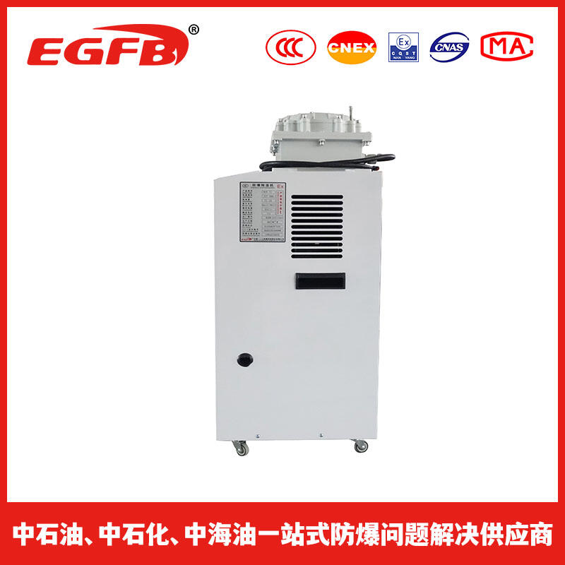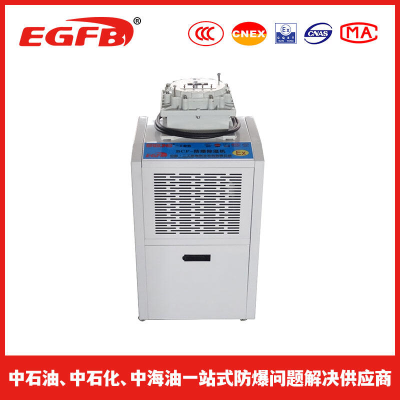 防爆除湿机主要是由热交换器、压缩机、盛水器、风扇、控制器等部件所组成,它的工作原理主要是利用风扇将空间中的潮湿空气抽入到除湿机内,之后再通过热交换器将空气中的水分冷凝成水珠,之后再将已经变得干燥的空气排出机外,在这样重复的循环中完成室内空气湿度的降低,除湿机的运用有效的降低了物品潮湿、霉变的现象。