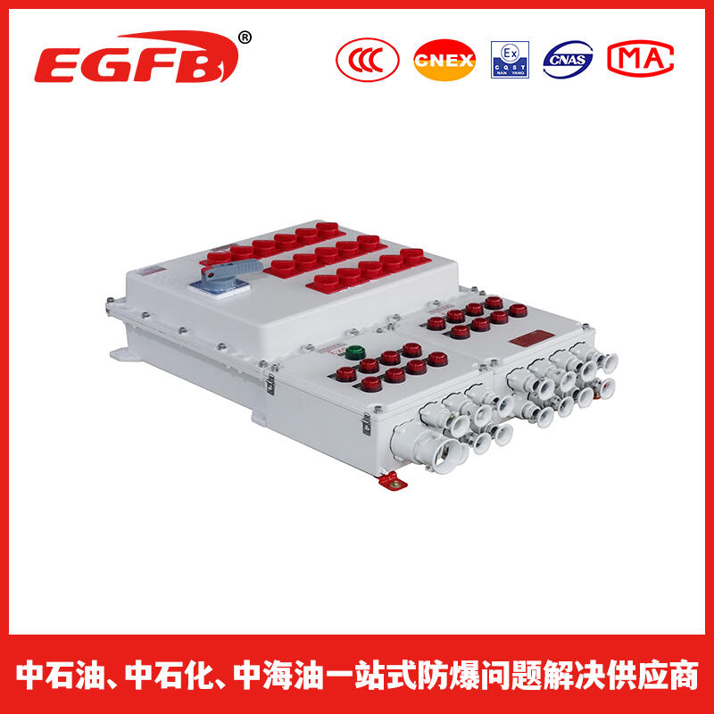 通过将多个防爆电磁起动器或电磁起动箱和防爆断路器、操作柱和防爆接线箱等组合,可在电压380V的三相交流50Hz的配电系统中实现动力配送及电动机的集中控制,支路最大可达160A,可根据用户要求实现远距离控制,并可根据要求装信号灯、电压表、电流表等监控装置;