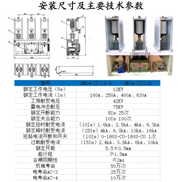CKG4E-12/250 高原型真空接触器 三极高压 全新高质量 高海拔用