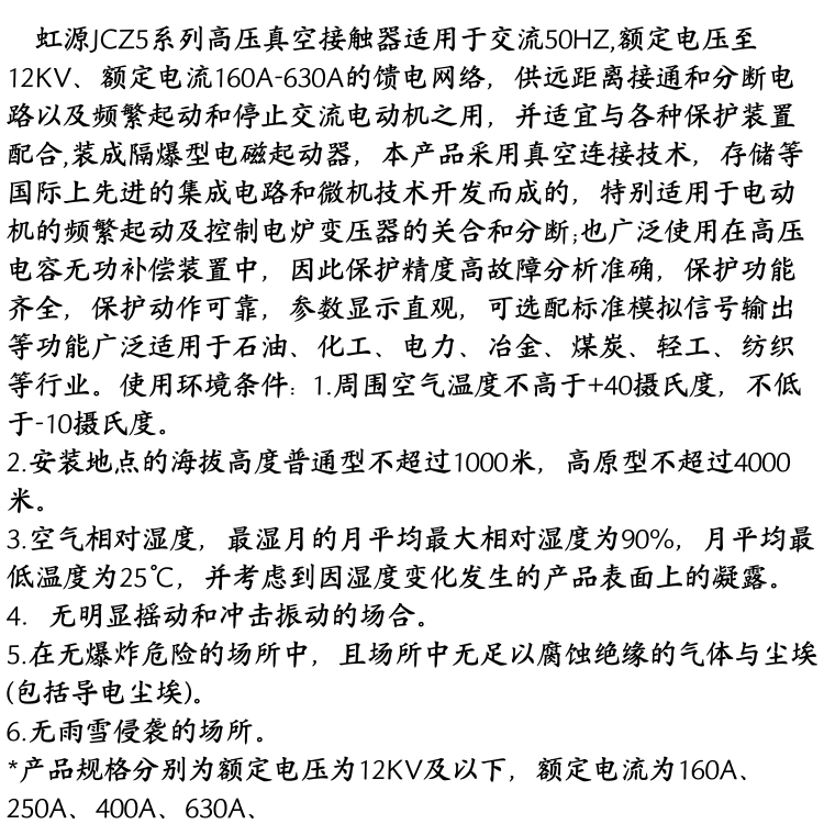 VCBE(G)-400A/12KV 高压真空接触器 源头厂家