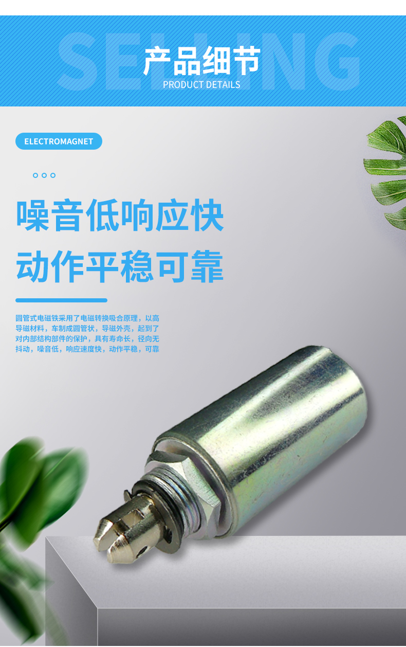 东莞三众电器供应用于发电机、智能柜圆管式电磁铁