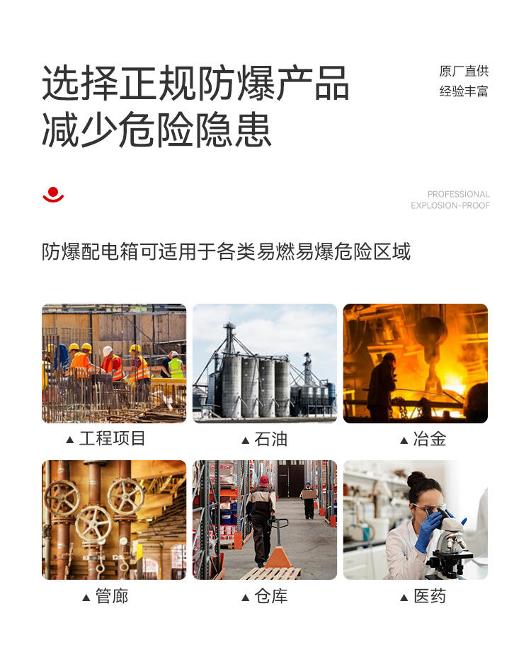 防爆配电箱具有防爆性能的一类配电箱。主要有防爆照明配电箱、防爆动力配电箱、防爆防腐配电箱等。BXM(D) 防爆配电箱适用于石化装置、石油平台、化工、制药、煤炭、冶炼、船舶制造、军工、纺织等易燃易爆场所走电配线使用。 1区、2区爆炸性气体环境。20、 21区、22区可燃性粉尘环境。