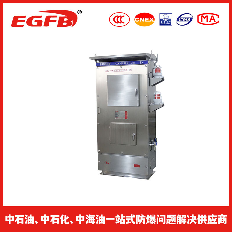 正压柜在自动控制系统的控制下,通入保护气体,正压腔内压力高于正压腔外的压力,形成微正压的安全小环境,从而阻止了可燃性危险气体进入正压腔内,***内装普通仪表和电器元件的安全运行。