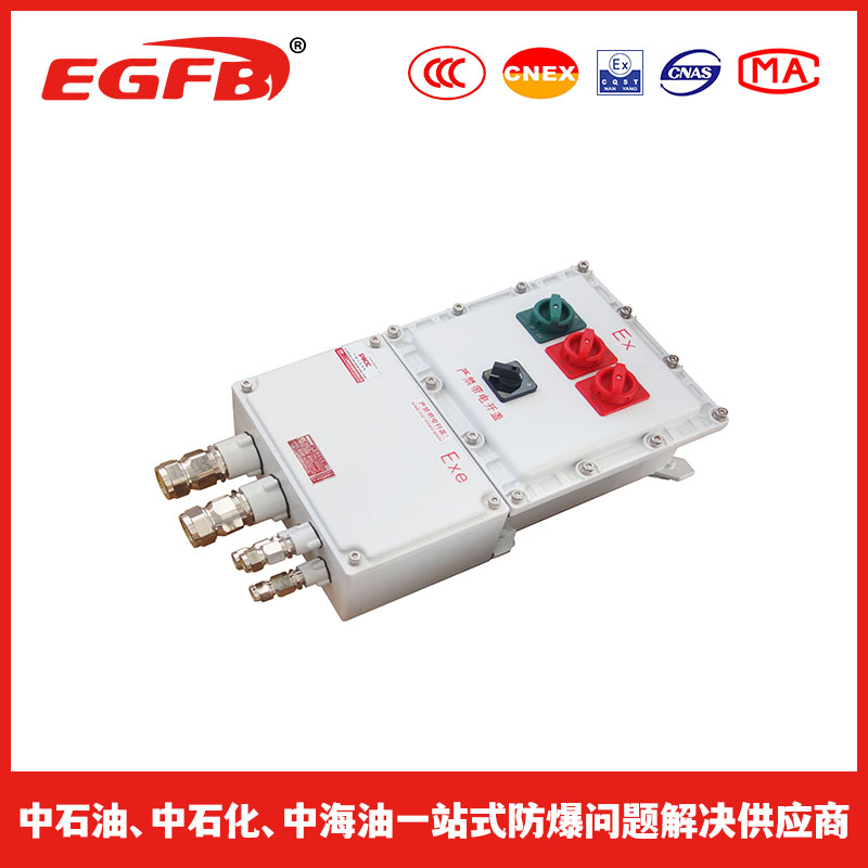 防爆配电箱分为:防爆照明箱,防爆动力箱,防爆控制箱,防爆控制柜,防爆配电柜,防爆操作箱,防爆箱,防爆起动箱,防爆电机起动器,防爆软起动,防爆变频箱,防爆星三角起动箱,防爆自耦降压起动箱,防爆磁力起动箱,防爆电源插座箱,移动式防爆箱、BMG防爆配电箱等
