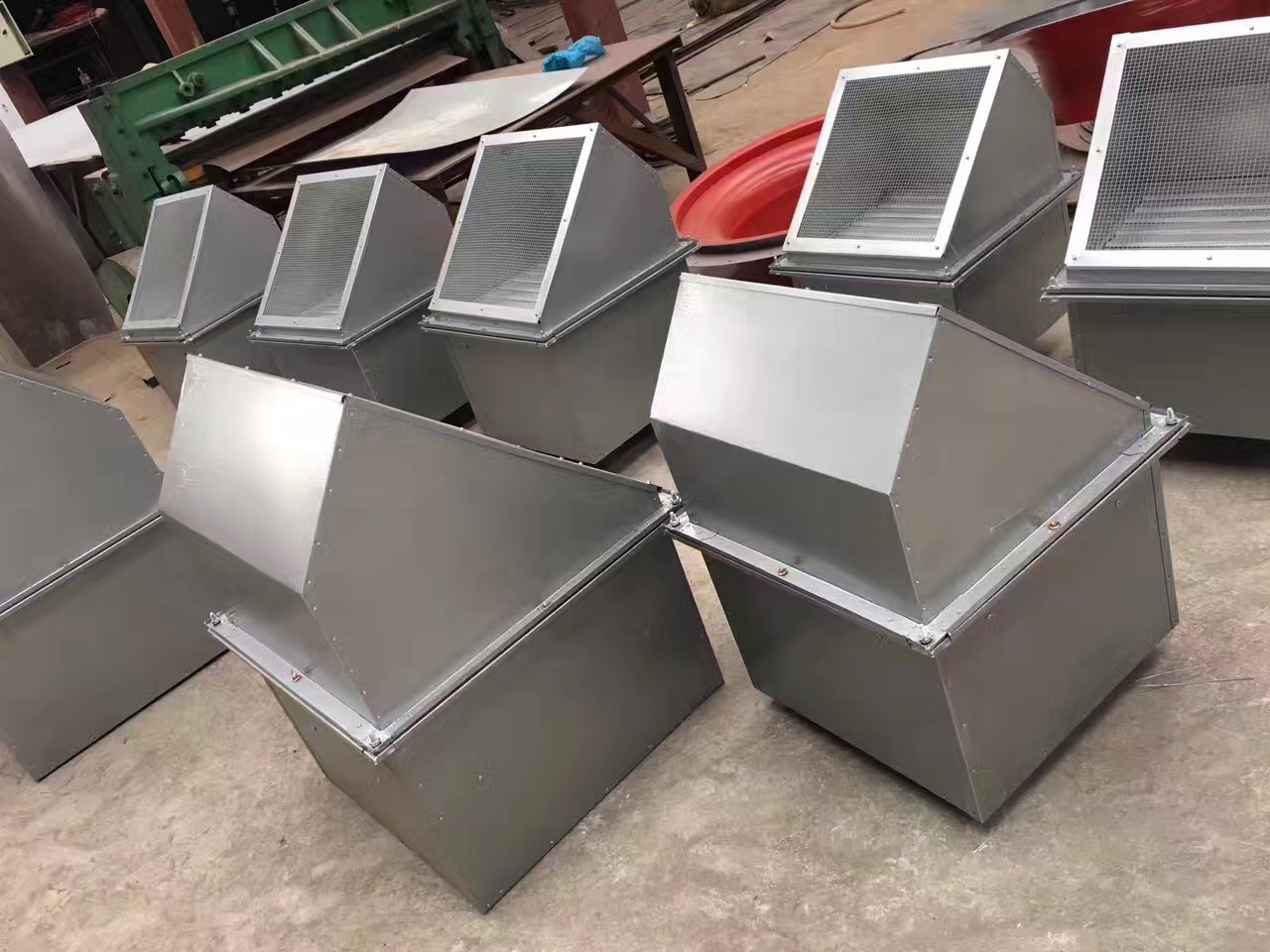 附件选配:重力式止回风阀(可确保车间在风机不开时保持与室外隔绝),订货时注明。