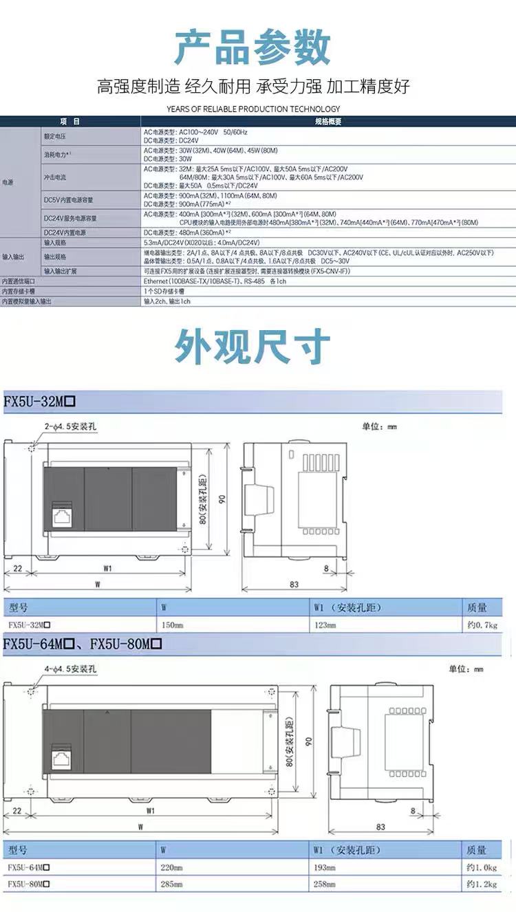 • PLC 主机:需搭配 FX5U 或 FX5UC 系列 PLC 使用,通过扩展总线连接。
