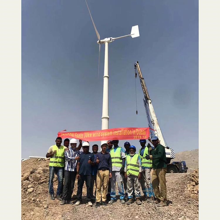 ⑵具有良好的空气动力特性,其叶片翼型采用专门为风力发电机设计的低速翼型。有较高的风能利用系数,而且气动设计兼顾了起动状态,风轮起动转矩大,使风力发电机的起动风速低。