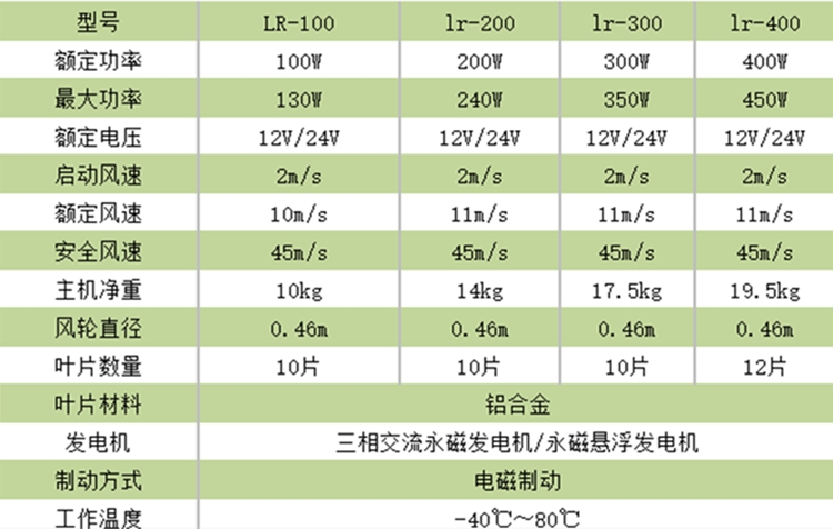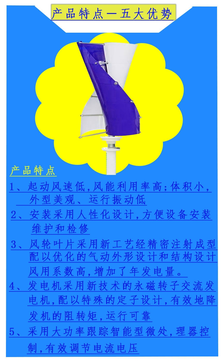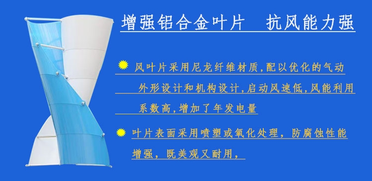 1.低温性能:机组是否具有耐低温运行性能,如在零下十几摄氏度的情况下,机组是否因为震动而停机。我们选取叶片材质是增强玻璃钢材料,既具有玻璃的硬度,耐高温,抗腐蚀,又具有钢的坚硬不碎。
