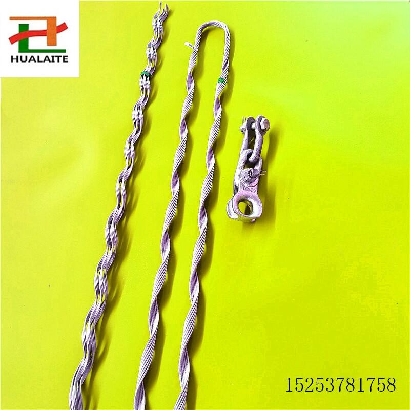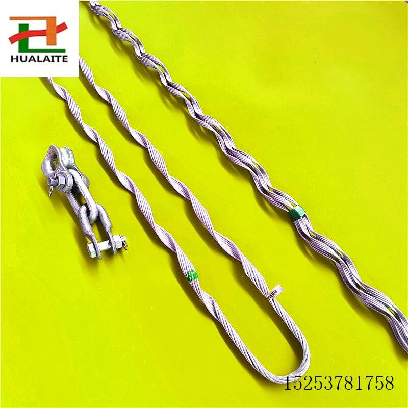 预绞式耐张线夹作用:是将ADSS光缆固定在转角、耐张、终端杆塔的挂点上,或将OPGW复合光缆固定在承力杆塔的地线支架上。各类耐张金具的破坏荷载就不小于光缆的计算拉断力值。预绞丝式耐张金具具有应力分布均匀,无应力集中点,有较好的动态应力承受能力及防腐性能好等优点。