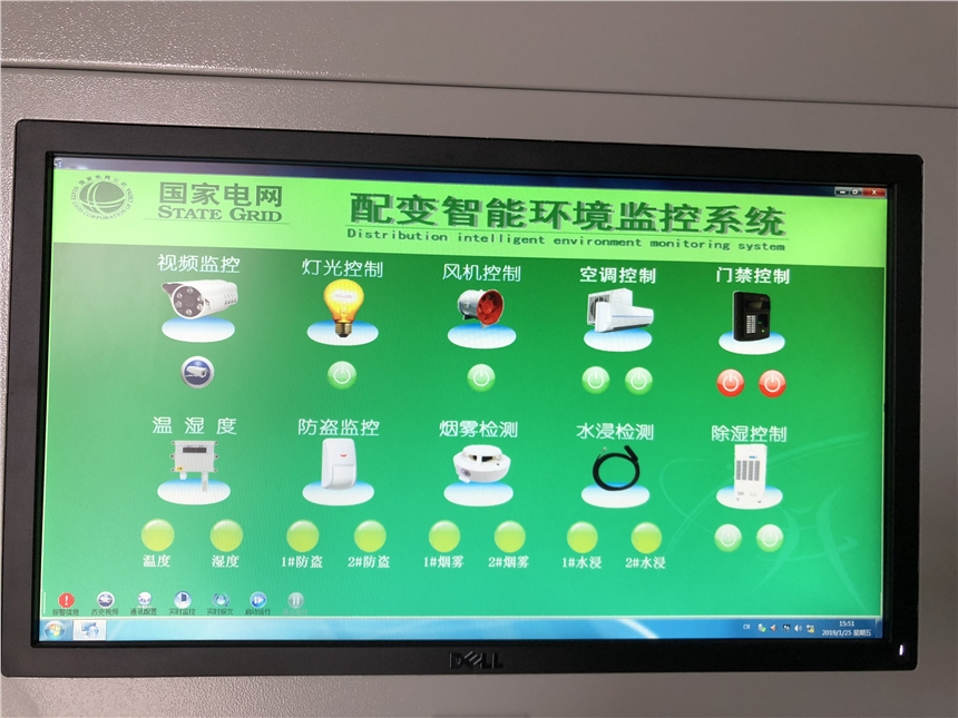环境监控子系统,主要通过监控主机读取房内温湿度、烟感、水浸、氧气、臭氧、SF6等传感器,根据预设的上下限定值,启动空调、除湿器、风机、水泵等,及时智慧治理,使超标项目快速恢复正常,保证配电站所环境持续合格达标,满足正常工作环境。同时监控主机实时上报当前的环境参数,在超出预设定值后,及时上告告警信号。