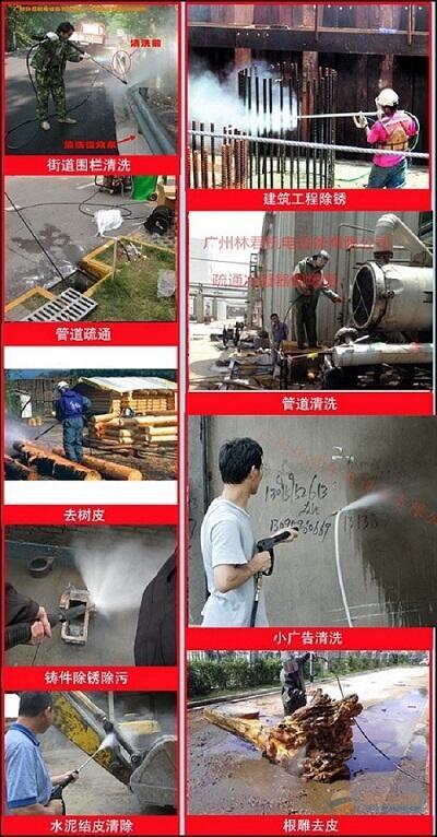 高压水射流下水道疏通清洗设备工作原理:下水道清洗机用于疏通、清除管道中的堵淤和污物。它以汽油机、柴油机或电机为动力驱动高压泵运转,将专业管道疏通用喷头通过高压泵与高压胶管连接,并将喷头直接放入需要疏通的管道当中。当高压泵工作时,利用喷头后方喷出的高压水所产生的反作用力,将喷头迅速向前推,并利用喷头前方喷孔所产生的高压水射流迅速的将管道清洗干净。