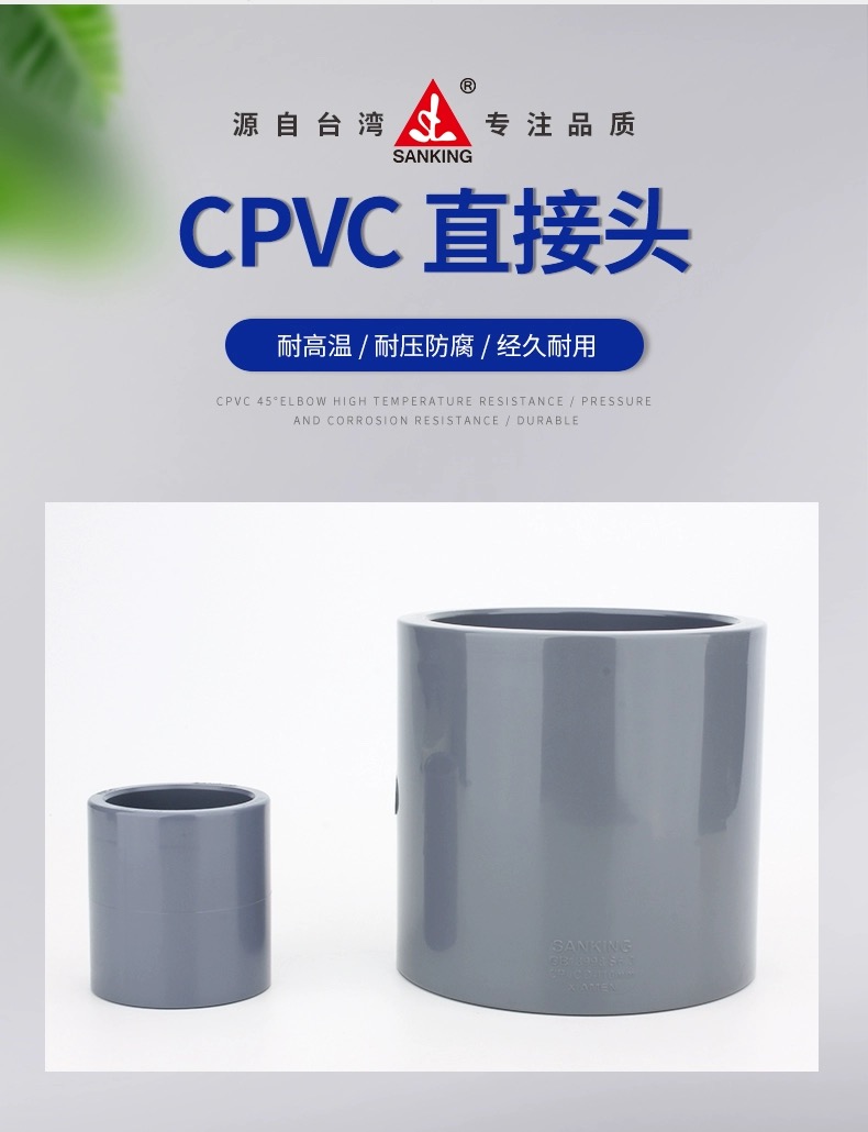 三厘SANKINGCPVC直接头管件管箍直通管套国美标
