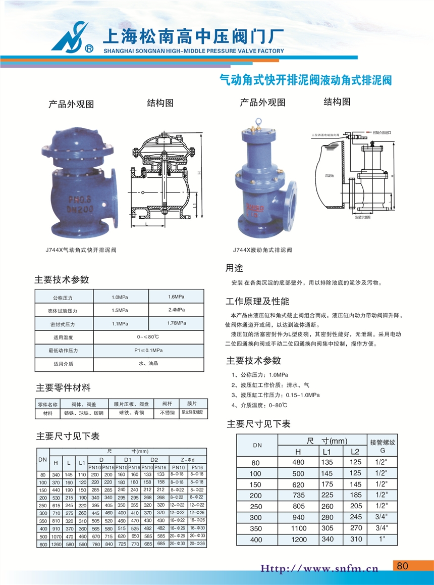 气动角式快开排泥阀
