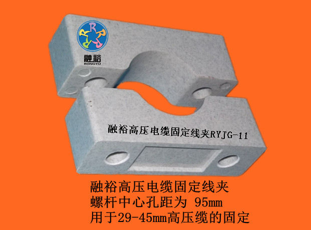 8、包装:纸箱 序号 型号 外形尺寸 宽×高×厚 mm 可固定 电缆外径mm 螺杆中心距 mm 配用螺杆mm 1 RYJG-11 100×62×30 29-45 65 M10×100 2 RYJG-12 140×80×35 43-59 100 M12×130 3 RYJG-13 140×87×35 55-70 100 M12×140