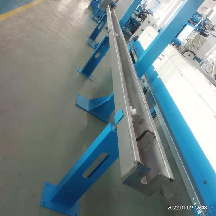 设备组成:1.放线(主动,被动,甩筒,无轴式等);2.整直或张力架;3.预热器(可选);4.过粉机(可选);5.主机;6.辅机(可选);7.水槽;8.印字机或喷码机(可选);9.测径仪;10.牵引(皮带,轮式);11.储线架;12.计米装置;13.火花机;14.收线(双盘,摇盘加包膜、无轴式);15.主控箱