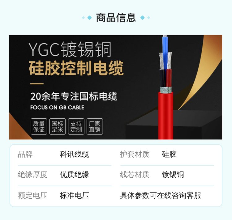 YGC镀锡铜硅胶控制电缆防水耐磨国标品质优质无氧