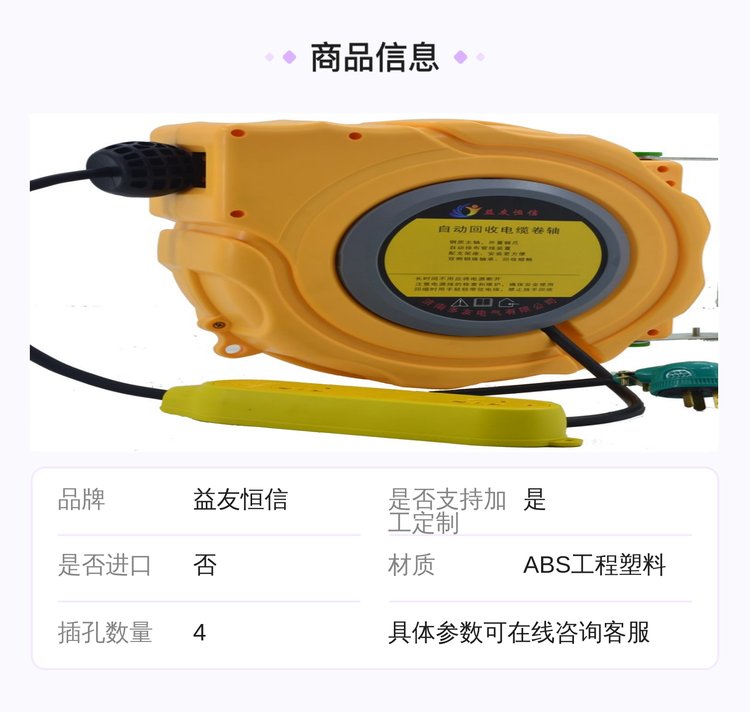 益友恒信3*2.5*15米电缆卷线器ABS塑料外壳定制不卡线
