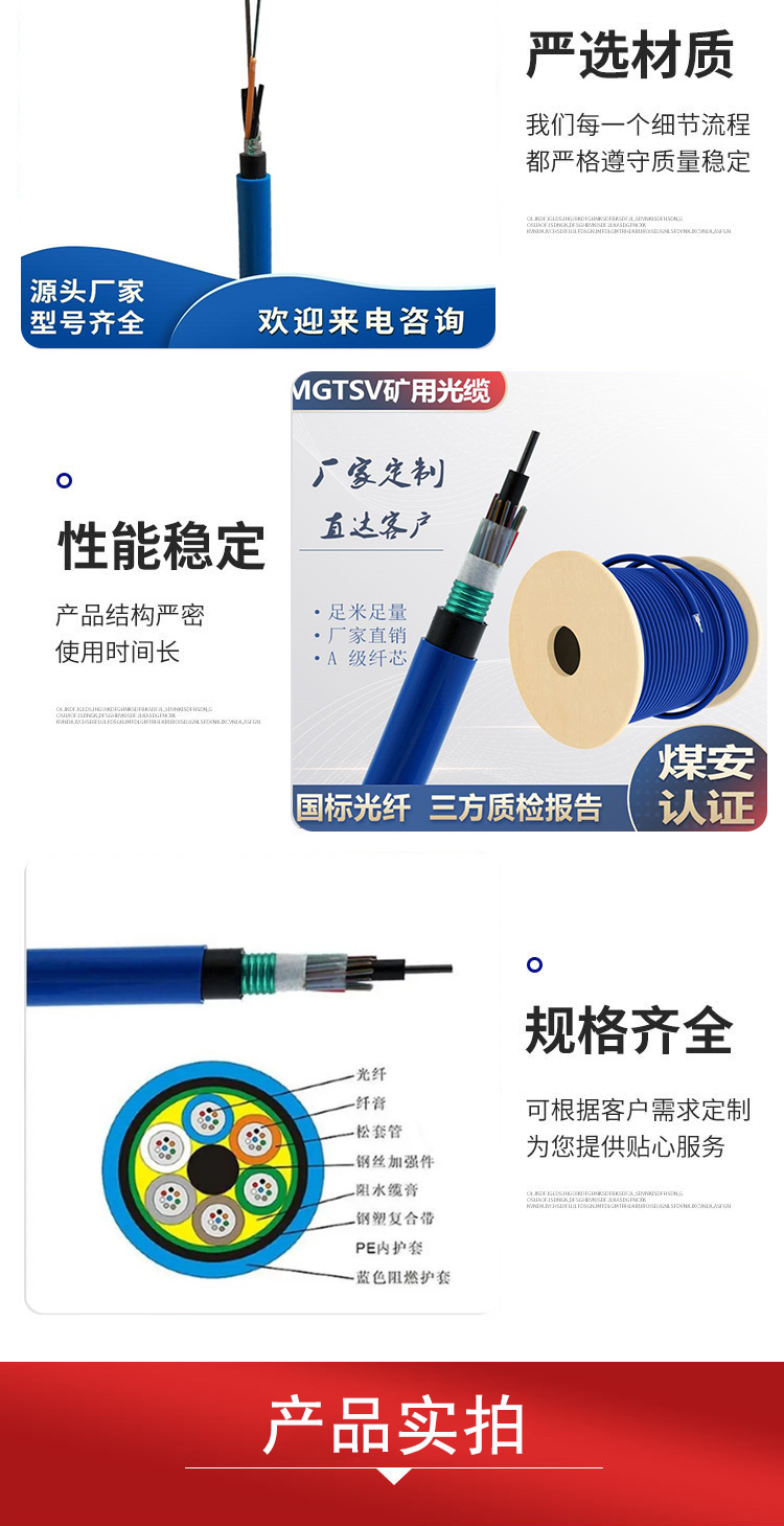 蓝色矿用层绞式MGTSV光缆铜线芯圆线可根据要求定做