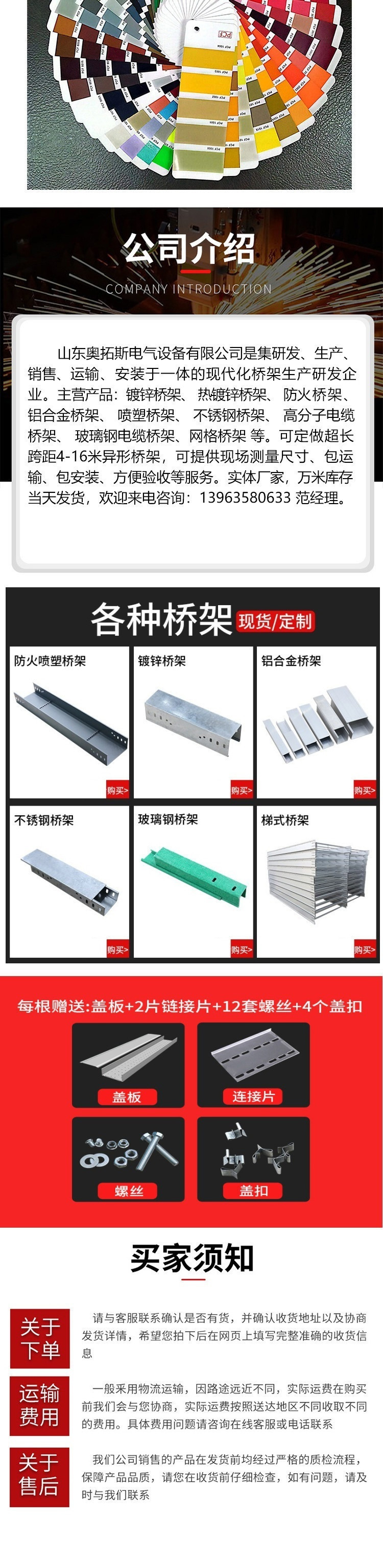 奥拓斯定制铝合金线槽梯式电缆桥架托盘式4-16米大跨距6000mm