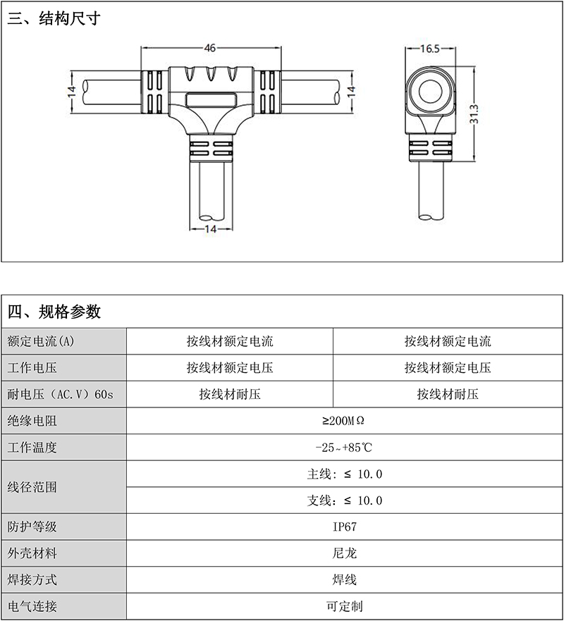 连接器类型 | T型三通 | ||