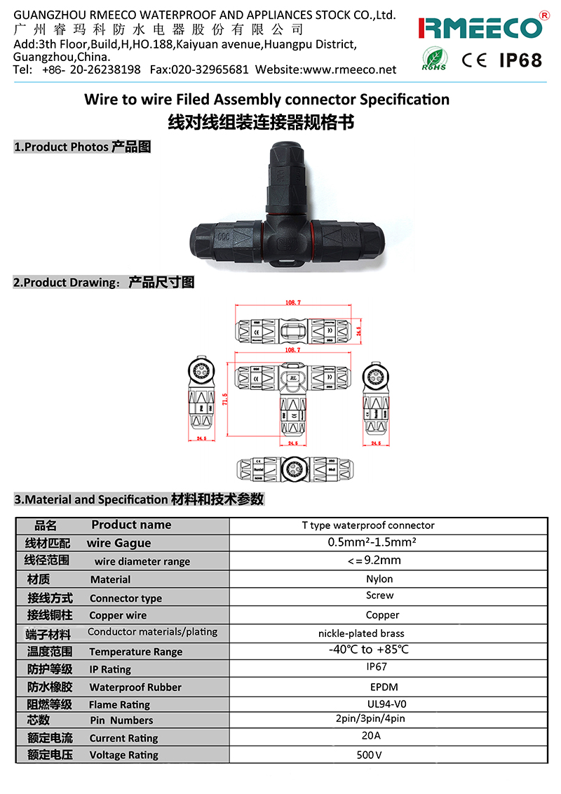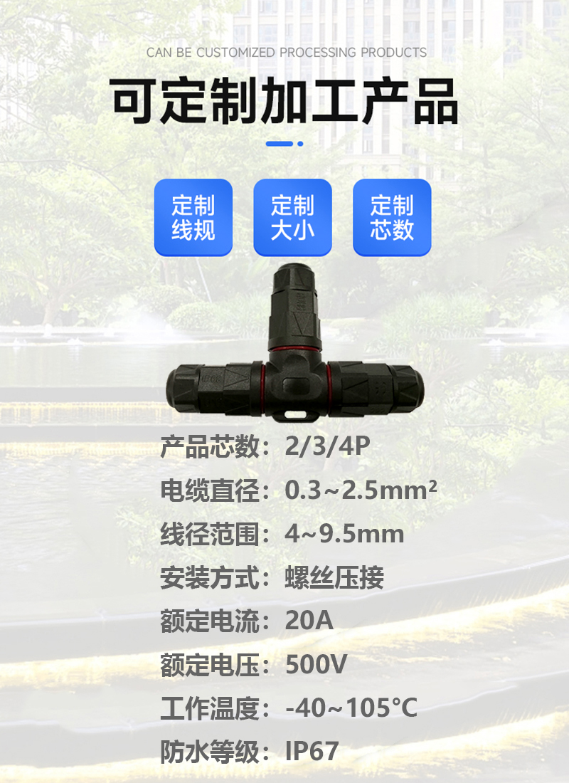 m20三通尼龙螺纹压接户外电源电缆电动车能源航空接头防水连接器
