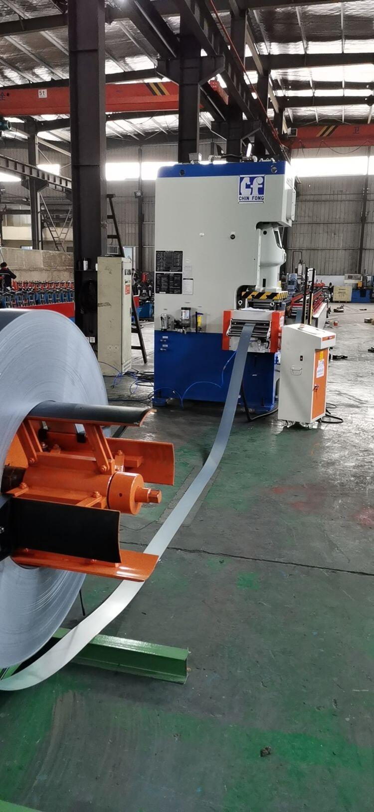整条生产线由放料系统、冲孔系统、成型系统、切断系统、电控系统等部分组成。