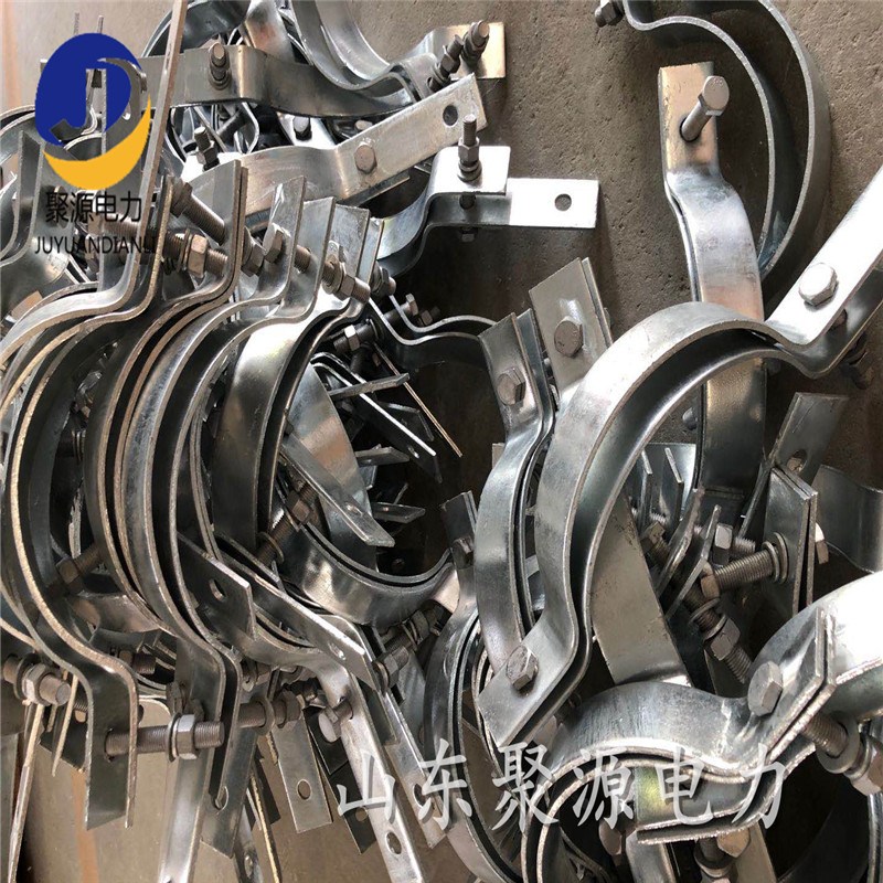 所谓抱箍是用一种材料抱住或箍住另外一种材料的构件,它属于紧固件.子母抱箍则适用于一个大抱箍安装在电线杆上面,另外一个小抱箍抱住光缆保护管的一种组合抱箍,材质是使用优质4*40的钢板,表面进行热镀锌处理,订货时需要提供线杆的杆径和光缆保护管的直径,才能定做。