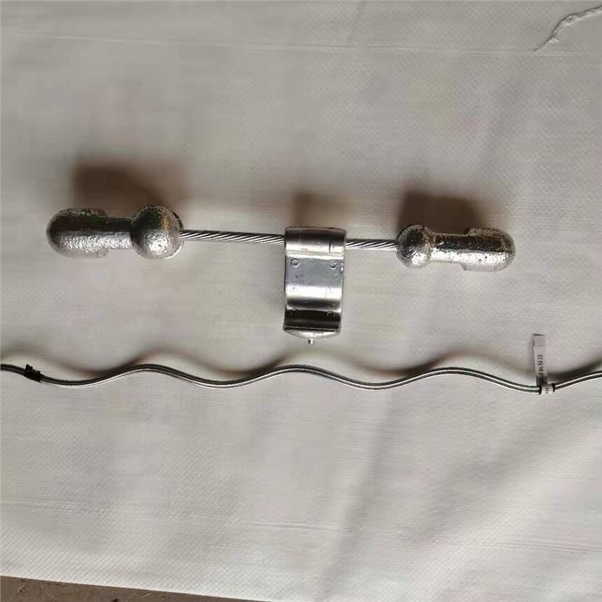 架空电力线路受风、冰、低温等气象条件的作用,使线路产生振动和动舞。振动频率较高而振幅很小,风振动使架空线在悬点处反复被拗折,引起材料疲劳,最后导致断股、断线事故。舞动的频率很低,而振幅却很大,很容易引起相间闪络,造成线路跳闸、停电或烧伤导线等严重事故。防震锤只是一段铁棒。由于它加挂在线路塔杆悬点处,以吸收或减弱振动能量,改变线路摇摆频率,防止线路的振动或舞动。