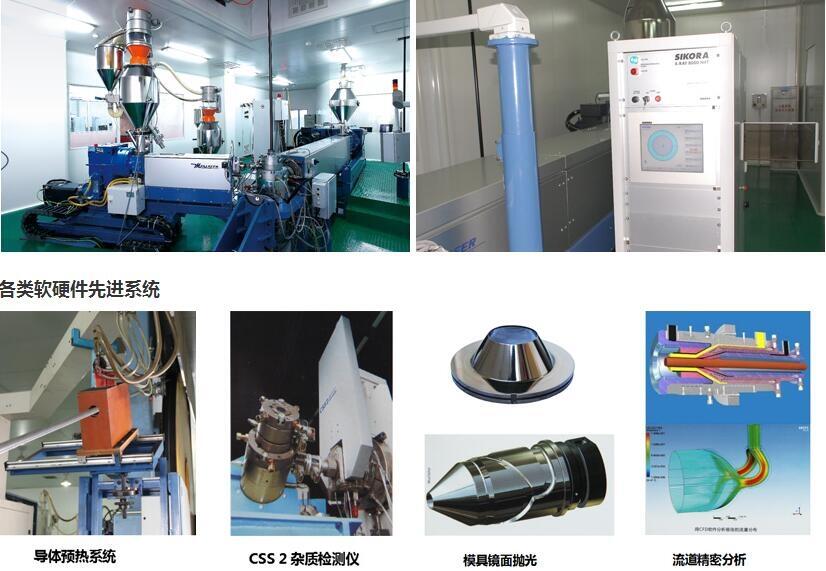 公司从芬兰麦拉菲尔(MAILLEFER)公司成套引进目前国际技术领先的两条500 kV三层共挤立式(VCV)交联电缆生产线,并建设华南地区最高的交联立塔,从瑞士哈弗莱(HAEFELY)公司引进试验电压为700 kV的局部放电测试系统。拥有达到国外先进水平35 kV及以下交联电缆三层共挤生产线,配套德国西科拉公司自动在线测径测偏仪。生产和检测设备先进齐全,技术力量雄厚,生产经验丰富,公司制度规范完整,管理精细,确保向用户提供优质产品。