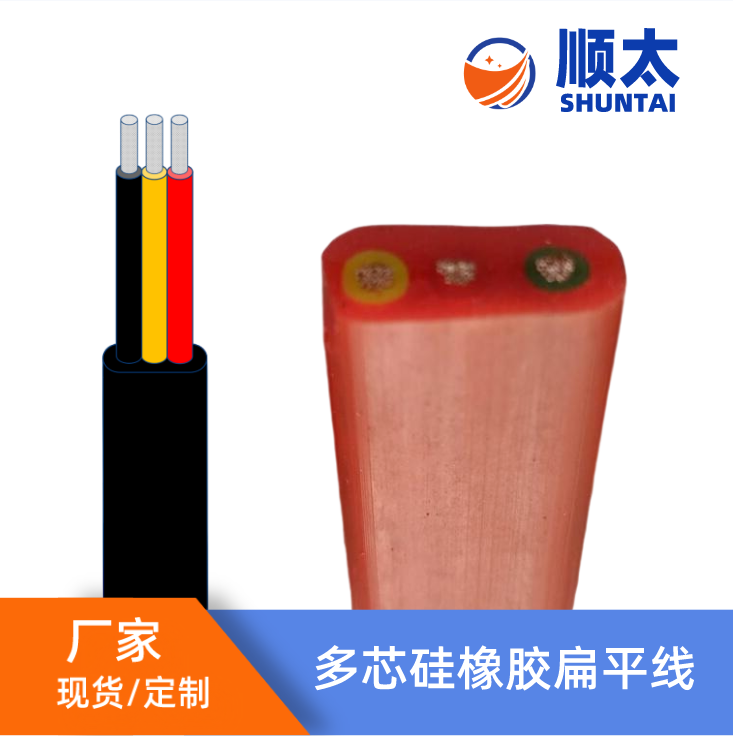 硅橡胶屏蔽扁电缆采用硅橡胶作绝缘或护套材料,由于硅橡胶本身具有耐高温,耐寒,柔软,耐磨,防腐等特性,因此该电缆高温环境下电气性能稳定,抗老化性能好,使用寿命长,适合于交流1KV及以下具有抗拉,耐热,防腐等特殊要求的行车,台车,传输机械等移动设备和电器用动力传输线及控制,照明,通讯线路,硅橡胶扁电缆已广泛应用于冶金,电力,化工,船舶,港口等行业,及矿山等恶劣环境作为移动电器设备之间的电器连接。