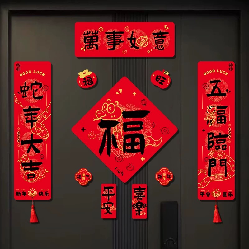 2025新款蛇年对联春节磁吸春联新年入户大门装饰过年立体福字挂件