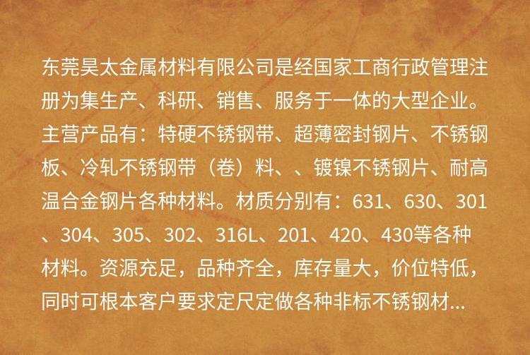 商铺名称:东莞昊太金属材料有限公司