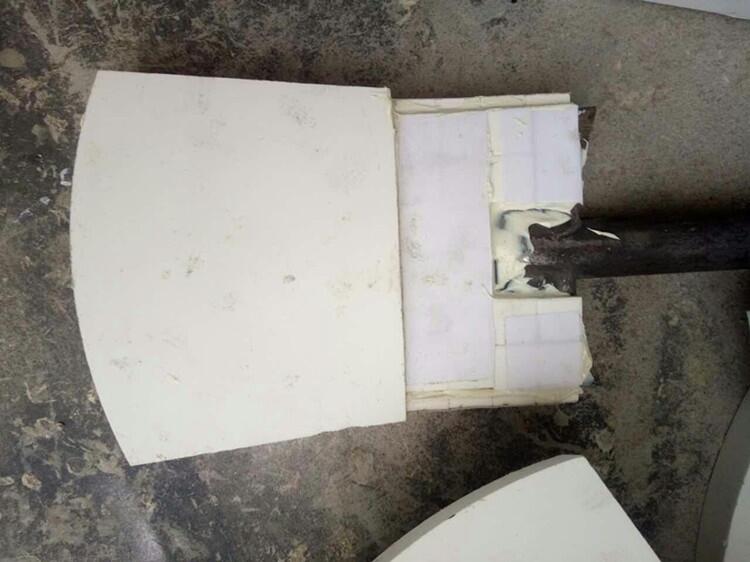 本产品为高分子复合陶瓷搅拌叶片(亦称陶瓷搅刀),是对传统搅刀形状进行优化设计后形成的一种高耐磨新型搅拌机配件,由扇形高分子复合陶瓷面和搅刀柄组成。陶瓷叶面为一次烧结成型高分子陶瓷片,使用特制高强度环氧树脂胶粘接在搅刀柄上,50年强度稳定,确保规定寿命期间永不脱落。搅刀柄根据需要设计成各种固定角度,采用燕尾焊接组合式结构,方便安装在各式搅拌机轴座上。