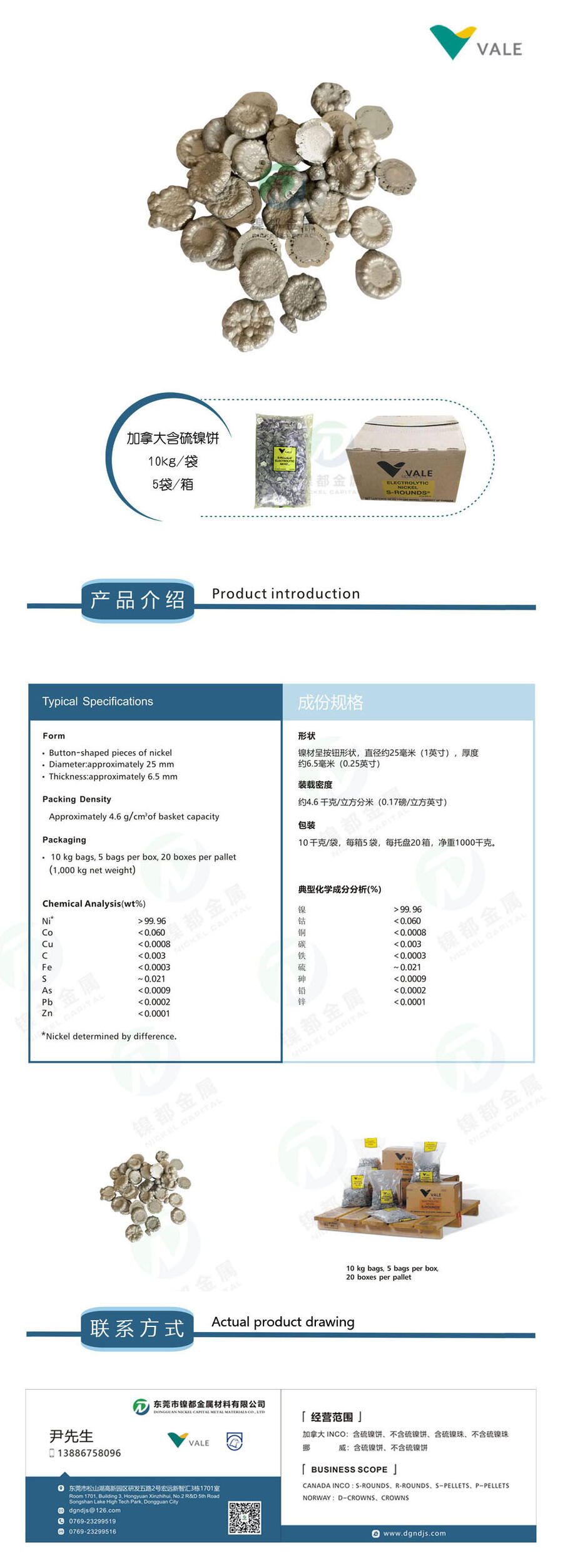 加拿大INCO镍饼 含硫镍饼 英可S梅花镍扣 含硫镍电解镍