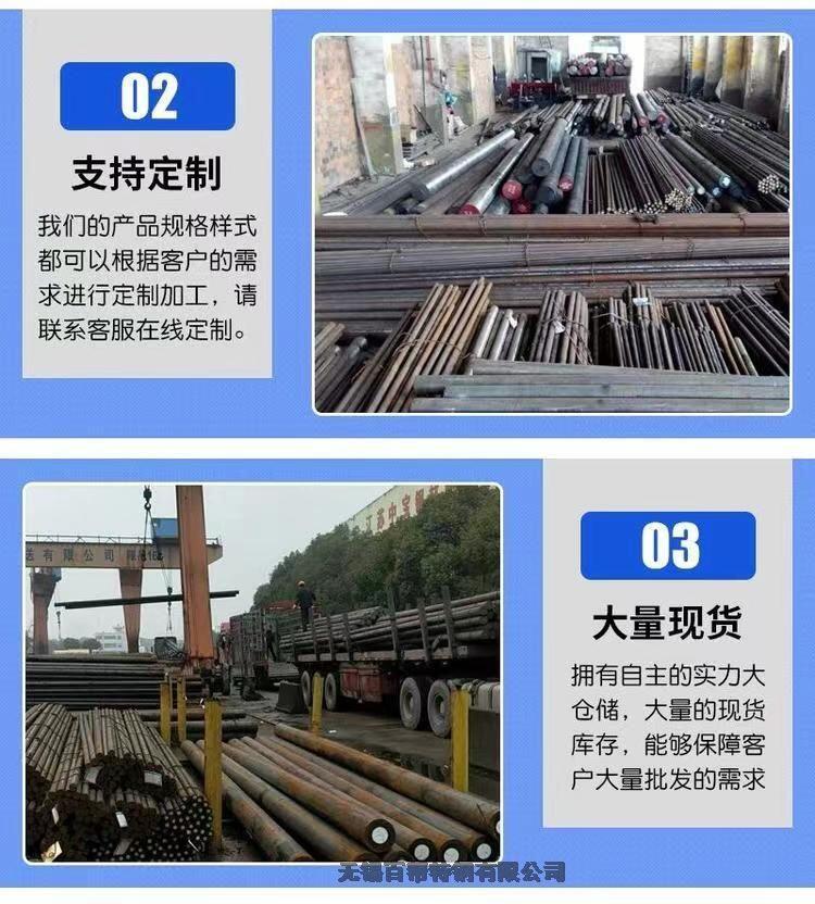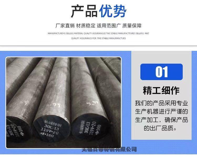 标准:(GB699-1988、GB700-1988、GB3077-1988、GB702-1986、QJ/HG02.17-1991),下表为圆钢详细的标准A3圆钢、Q235圆钢、10#圆钢、20#圆钢、35#圆钢、45#圆钢、60#圆钢、80#圆钢、20Mn圆钢、45Mn圆钢、50Mn圆钢、65Mn圆钢、S50C圆钢、K40圆钢、T8圆钢、T10圆钢、Q345圆钢、Q345B圆钢、Q345C圆钢、Q345D圆钢、Q345E圆钢、16MnCR4圆钢、20Cr圆钢、35Cr圆钢、40Cr圆钢、27SiMn圆钢、15CrMo圆钢、20CrMo圆钢、35CrMo圆钢、42CrMo圆钢、45CrMo圆钢、42CrMo4圆钢、42CrMoA圆钢、20CrMnMo圆钢、20CrNiMo圆钢、8Cr3圆钢 、10CrMo910圆钢、20CrMoTi圆钢、30CrMnTi圆钢、12Cr1MoV圆钢、18Cr2Ni4W圆钢、18Cr2Ni4WA圆钢、20CrMnSi圆钢、20CrNi圆钢、20CrNi3圆钢、40CrNi圆钢、50CrNi圆钢30CrNiMo8圆钢、30CrMnSi圆钢、34CrNiMo6圆钢、36CrNiMo4圆钢、38CrMoAL圆钢、40CrNiMoVA圆钢、45CrNiMoVA圆钢、45CrNiMoV圆钢、40Cr2Ni2Mo2圆钢、36CrNiMo4圆钢、38CrMoAl圆钢、Cr4W2MOV圆钢、7CrSiMnMoV圆钢 12CrMoV圆钢、9Cr18MoV圆钢、5CrNiMo圆钢、9Cr2Mo圆钢、3Cr2W8V圆钢、4Cr9Si2圆钢、25Cr2MoV圆钢、25Cr2Ni4MnMoA圆钢、5CrNiMo圆钢、5CrMnMo圆钢、Cr12MoV圆钢、H13圆钢、3Cr2W8V圆钢、W18Cr4V圆钢、W6Mo5Cr4V2圆钢、W9Mo3Cr4V圆钢、20Mn2圆钢、40Mn2圆钢、50Mn2圆钢、12CrNi2圆钢、9Cr2圆钢、Cr12圆钢、1Cr13圆钢、2Cr13圆钢、3Cr13圆钢、Y3Gr13圆钢、3Gr13Mo圆钢、6Gr13Mo圆钢、1Gr11MoV圆钢、1Gr5Mo圆钢、1Gr17圆钢(430圆钢、430H圆钢、430M圆钢、430HT圆钢)、1Gr17Mo圆钢(434)圆钢、9Gr18圆钢、9Gr18Mo圆钢、9Gr18Mov圆钢、2Gr13Ni2圆钢、1-2Gr17Ni2圆钢、4Gr9Si2圆钢、4Gr10Si2Mo圆钢、Y15圆钢、Y35圆钢、YF20-40MnV圆钢、GCr15圆钢、T13圆钢、9Cr2Mo圆钢、40-50CrV圆钢、60Si2Mn/50Mn圆钢、20CrMnTi圆钢、20CrMnTiH圆钢、W6Mo5Cr4V2圆钢、W9Mo3Cr4V圆钢、W18Cr4V圆钢、9SiCr圆钢、CrWMn圆钢、6CrW2Si圆钢、5CrW2Si圆钢、304/2B圆钢、304/BA不锈圆钢、321/2B不锈圆钢、430/2B不锈圆钢、409L不锈圆钢、316L/2B不锈圆钢、304/NO.0不锈圆钢、321/NO.0不锈圆钢、316L/NO.0不锈圆钢、309S不锈圆钢、310S不锈圆钢