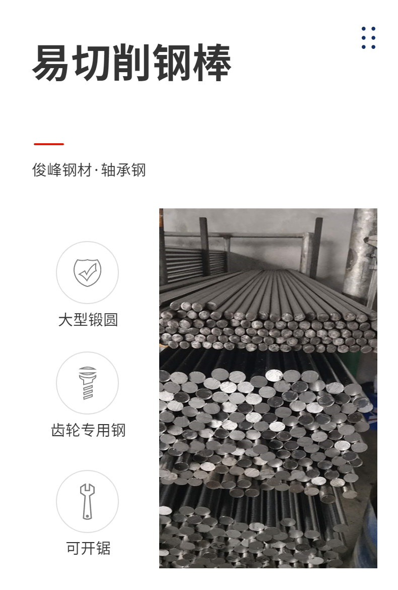 1.加工性能好:产品具有切削流畅,材质优良,加工稳定,金相组织好,化学成份稳定、偏差小,钢质纯度净,夹杂物含量低,不易损伤等特点;极容易在车床切削,使用寿命和生产效率均提高40%;