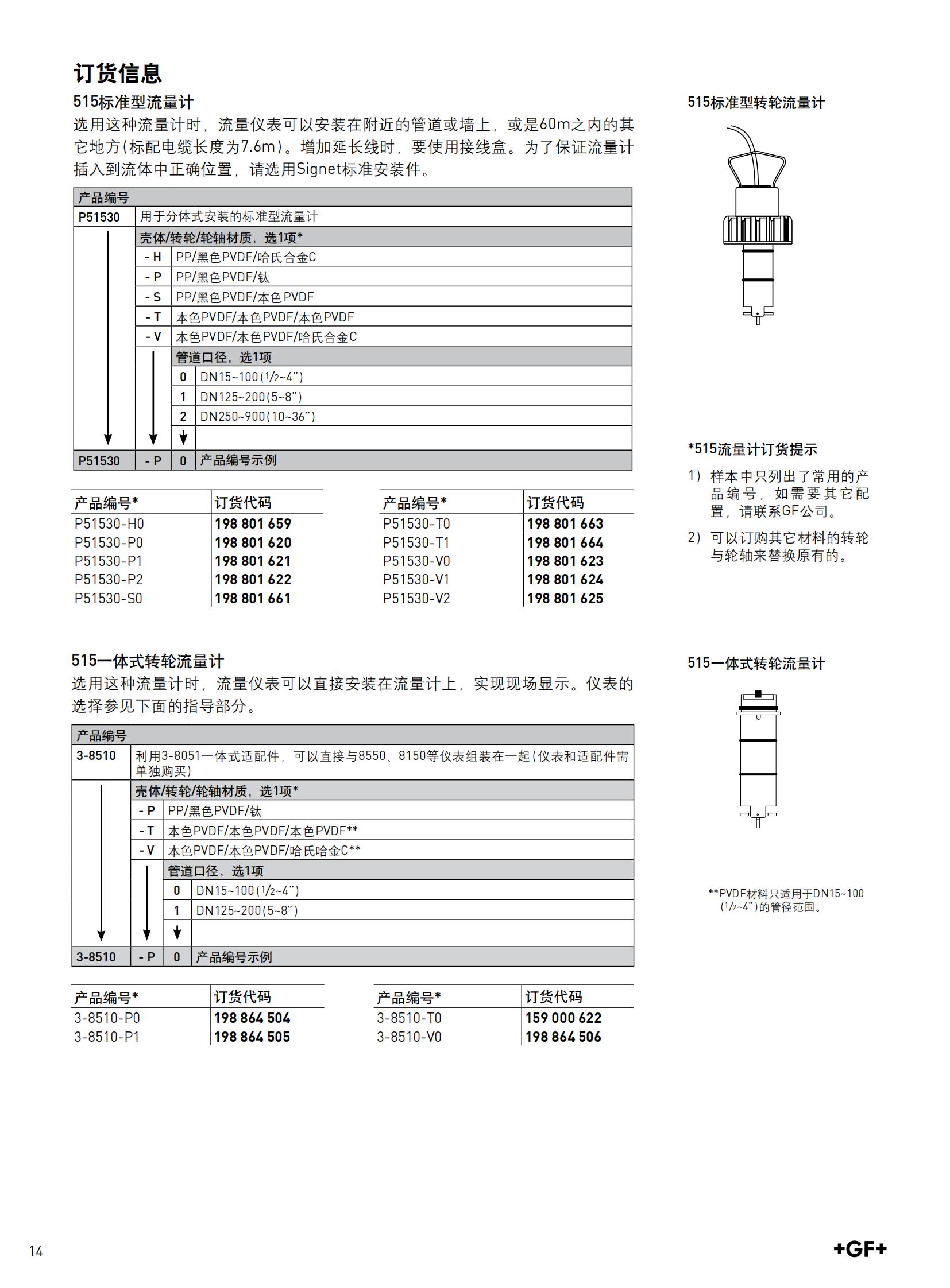 GF转轮流量计P51530-P0/P51530-P1流量传感器探头 测量范围 | 0.3-6m/sm3/h | ||