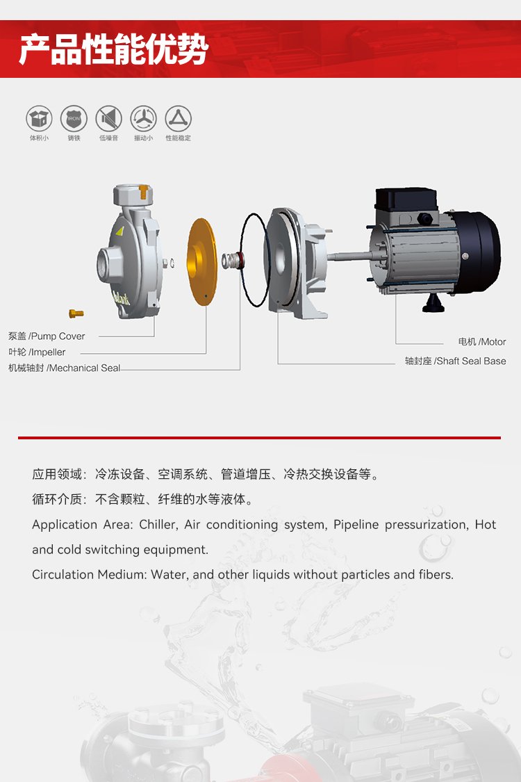 卧式清水离心泵ISW奥兰克气液雾化加压混合用于冷冻设备空调系统
