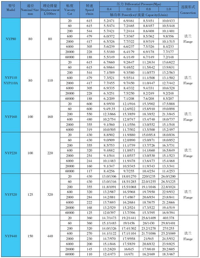NYP型内环式高粘度泵是一种容积式内转子泵。这种类型的泵自吸性能强,适用于输送不含固体颗粒和纤维的粘稠液体,甚至是半固体状态的液体,最高输送粘度达到3*105厘泊。具有体积小、重量轻、脉动小、噪音低、运转平稳、寿命长等优点。