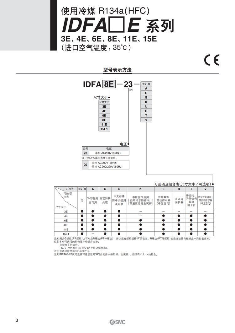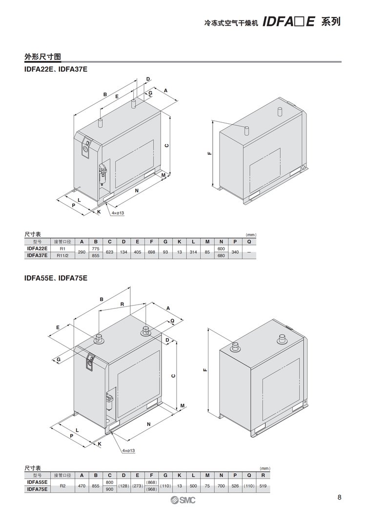 三坐标用 日本SMC冷冻式干燥机IDFA3E/4E/6E/8E/11E/15E1原装现货 品牌 | SMC | ||