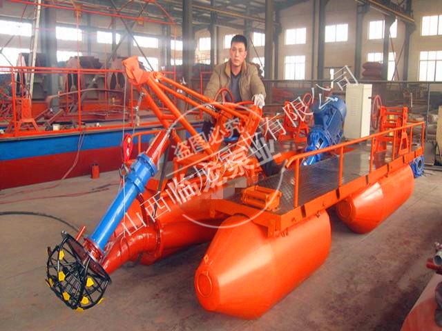 3、绞吸式清淤机(可通过电机或柴油机为动力并配套液压绞刀装置,将淤泥打散排出。适用于:水深的作业领域或淤泥板结较硬的介质物)