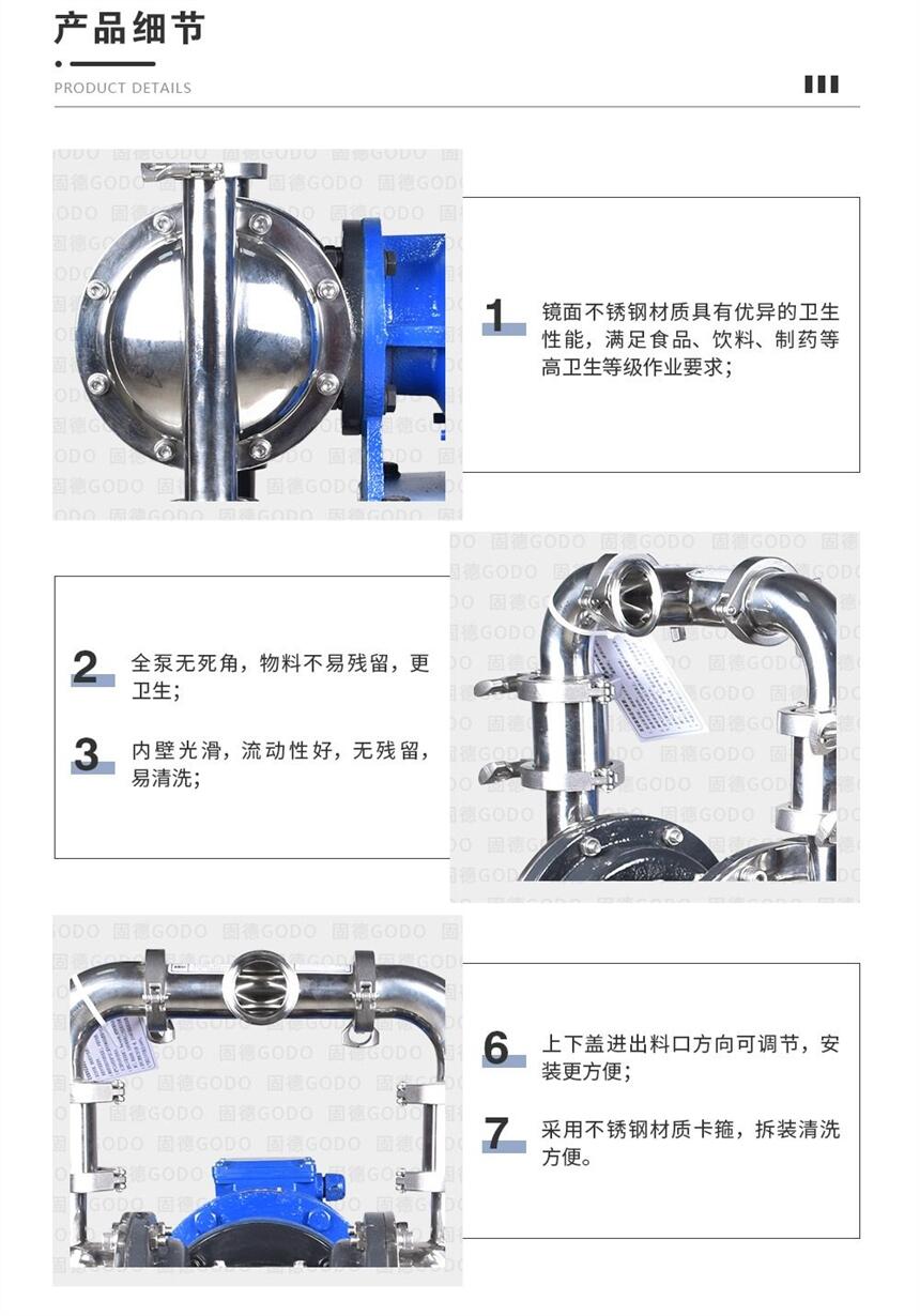 边锋泵业固德牌电动卫生级隔膜泵,防爆、自吸、可空转运作不锈钢高精度抛光