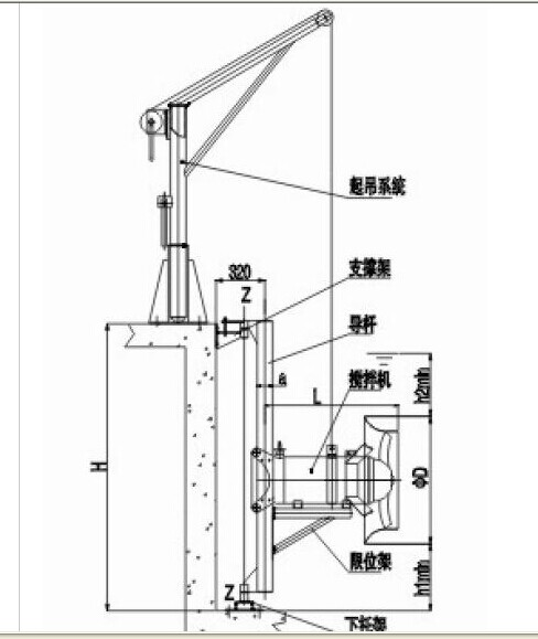 潜水搅拌机的安装导杆能保证设备自由转动、升降、调节各种角度,提升和安装潜水搅拌机也不必要把池子放空;