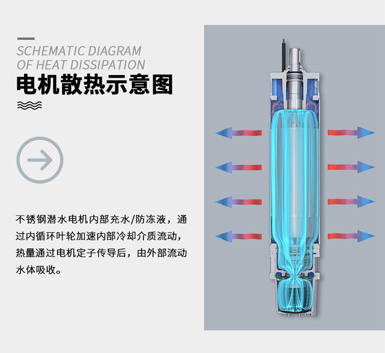 2、充水、潜水使用:电机腔充满水,并保证潜水一定深度使用,建议入水深度不小于1-70米。