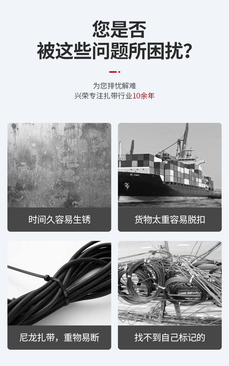 3.可以通过增加不锈钢扎带的缠绕圈数来提供高的捆扎拉力;