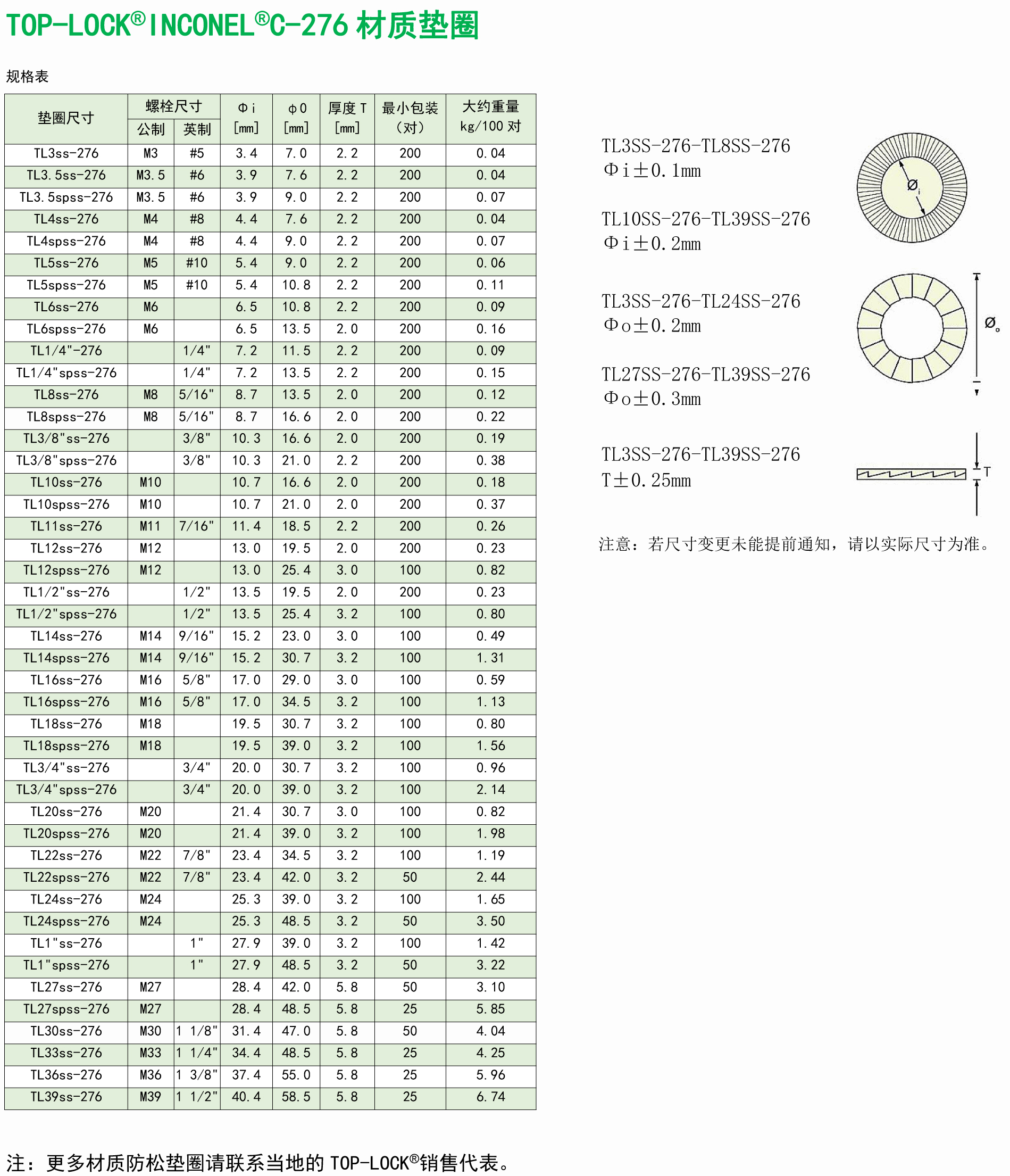 M3-TL1"ss防松垫圈 防松垫片 718/C-276材质(价格请致电咨询) 公称直径 | M3-M39 | ||