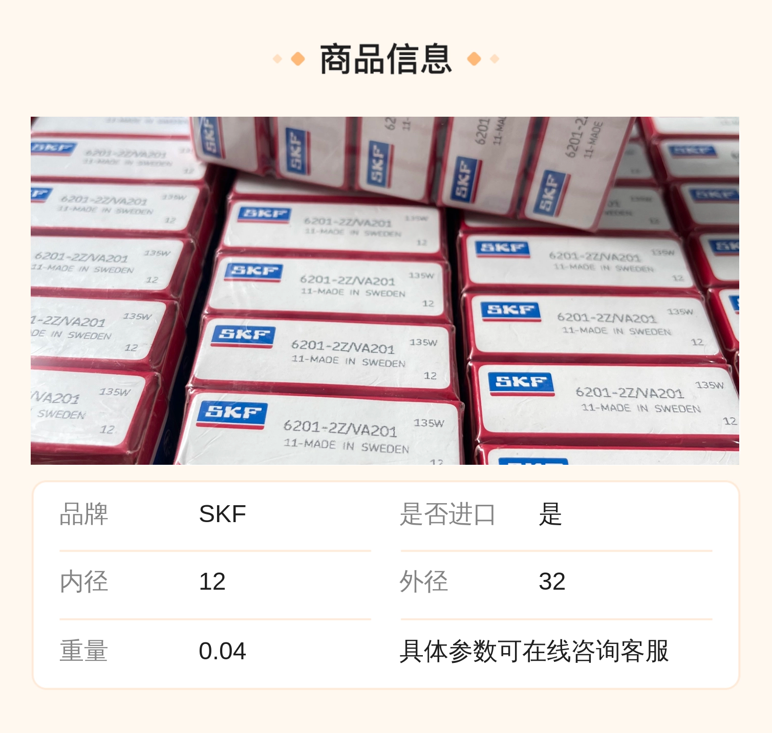 SKF轴承6201-2Z/VA201石墨耐高温 瑞典进口 原装正品 是否进口 | 是 | ||